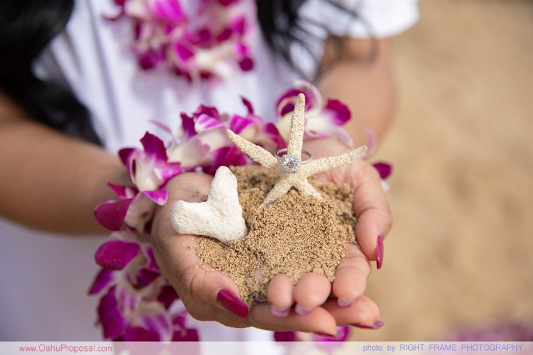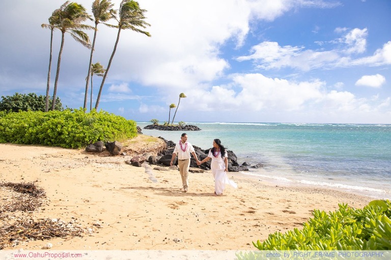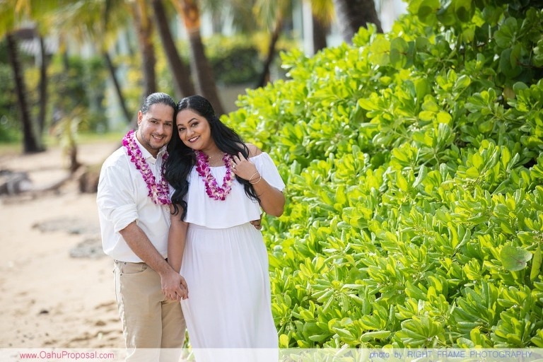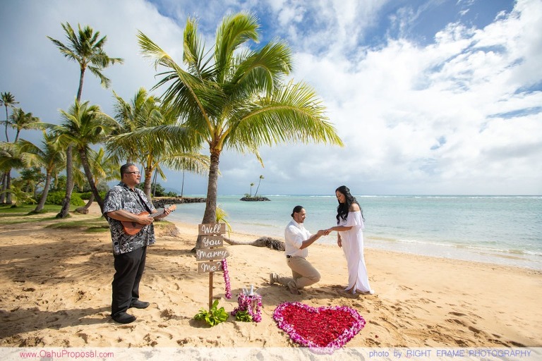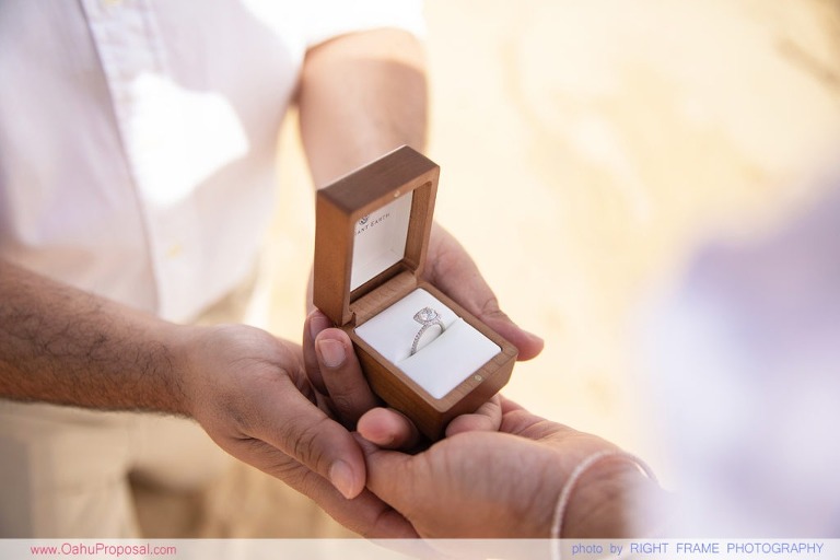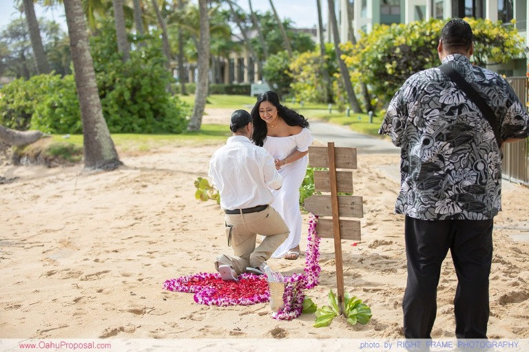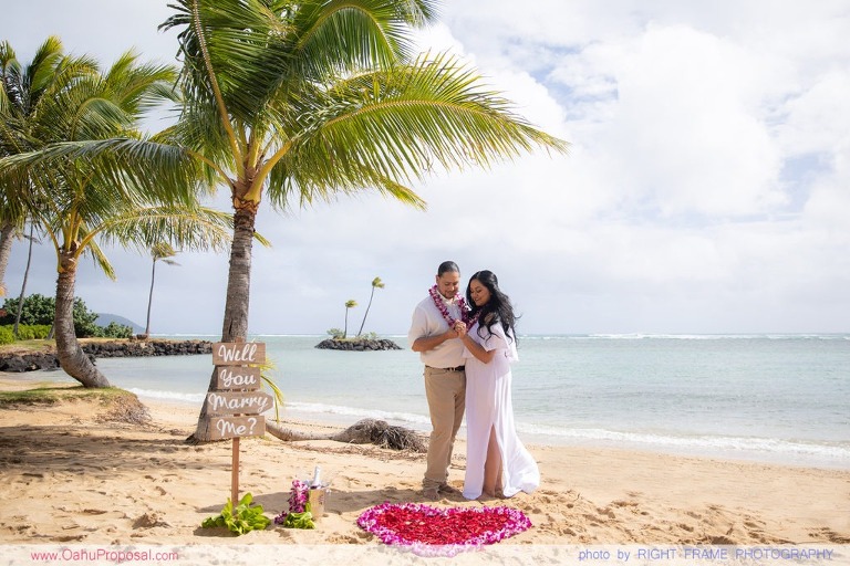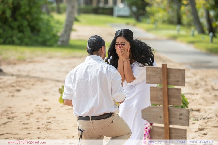 Emotional Proposal at Kahala Beach (aka Waialae Beach Park), Oahu (near The Kahala Hotel & Resort – 15 minutes by car/Taxi from Waikiki Beach). Photographed by Honolulu Proposal Photographer – Right Frame Photography