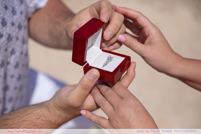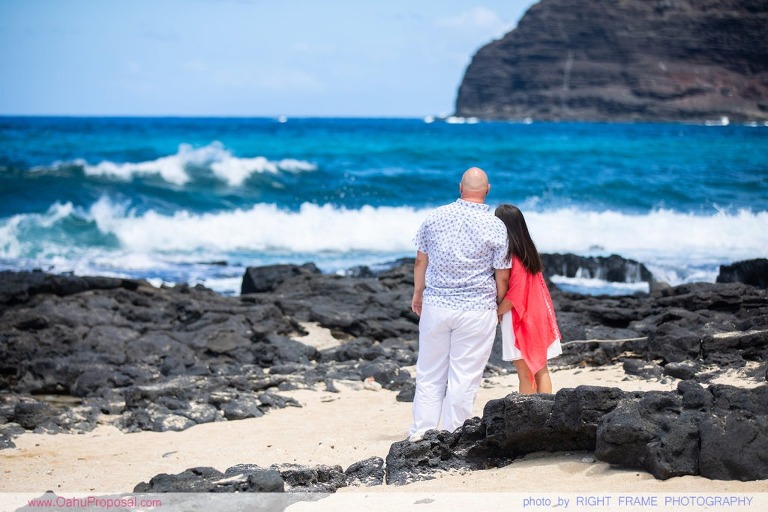 Jason’s surprise private proposal at Makapu’u Beach, Oahu photographed by Hawaii Proposal Photographer – Right Frame Photography.