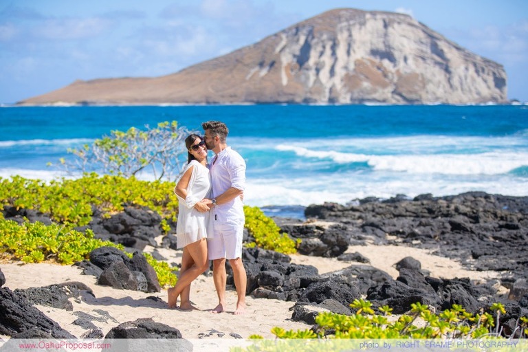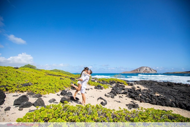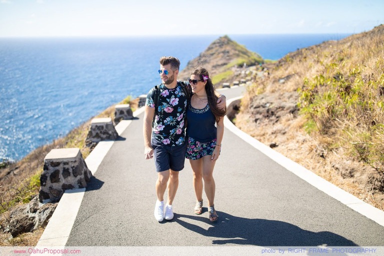 Engagement was photoshoot at Makapu’u Lighthouse Hike and Makapu’u Beach. Photographed by Hawaii Proposal Photographer – Right Frame Photography.