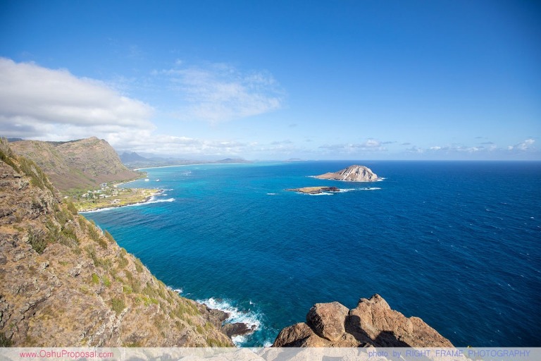 Surprise hiking proposal on top of a cliff – Makapu’u Point Lighthouse Trail, Oahu.